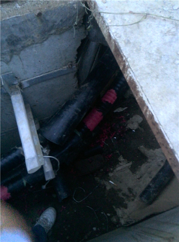 經(jīng)過測距設(shè)備檢測故障位置距離測試端30米。設(shè)備再次加壓,在故障位置明顯看到有燃弧現(xiàn)象,定位完畢。